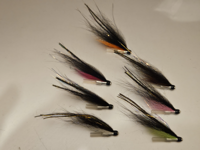 Set of 7 Assorted Micro Sunray Shadow Salmon Flies tied on 1/2" Aluminium Tubes This is a one off set.