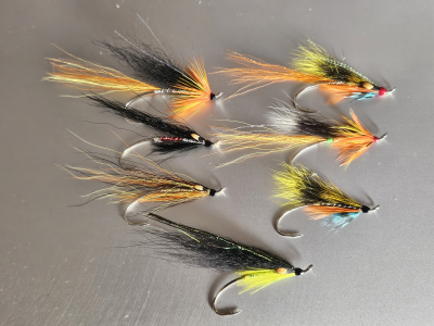 Set of 7 Assorted Salmon Flies tied on Partridge Salar Silver Single Hooks Size 3. (CS14/1S) Patterns Included are:- Cascade Ghillie Executioner Aurora Cascade Gold Bodied Willie Gunn Munro Killer Posh Tosh This is a one off set as these are the last of these hooks.